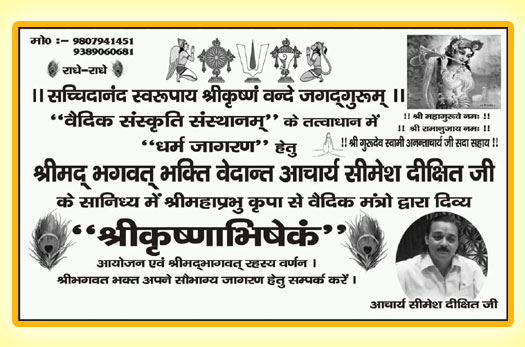 श्रीकमलाधिपते श्रीमनलक्ष्मीनारायण सौभाग्य हृदयांश श्रीमद्भगवतभक्ति वेदान्त आचार्य सीमेश दीक्षित जी